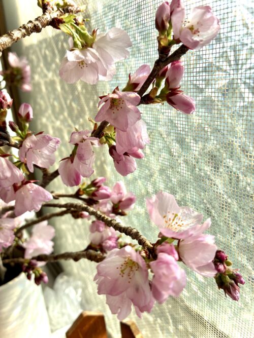 昨日の朝の部屋の桜。いい感じに咲いてます。